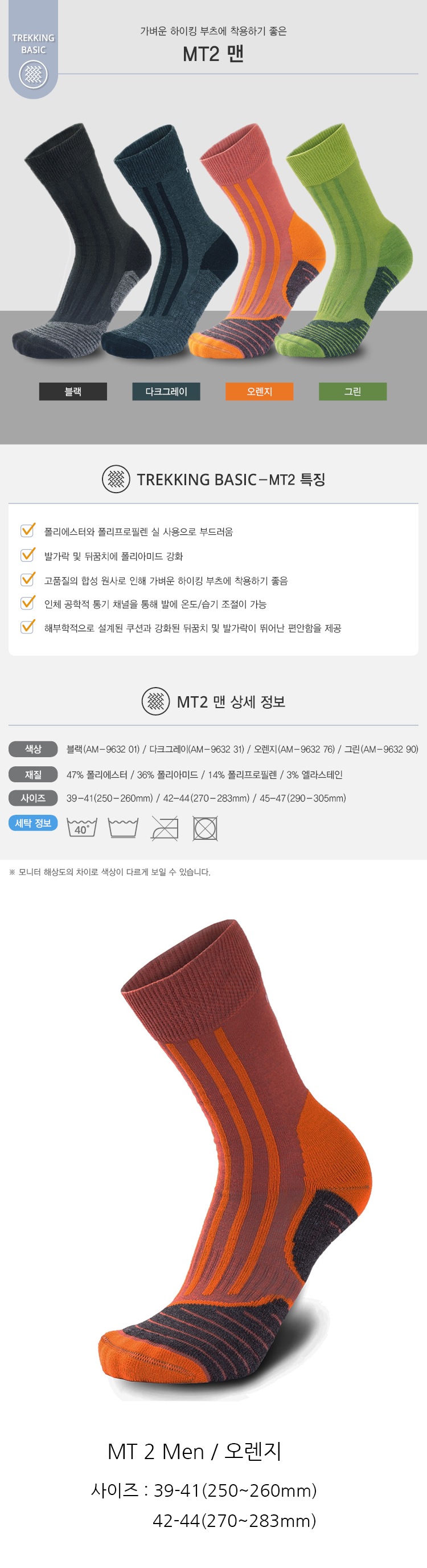 • MT2 맨 트레킹 양말(오렌지)
