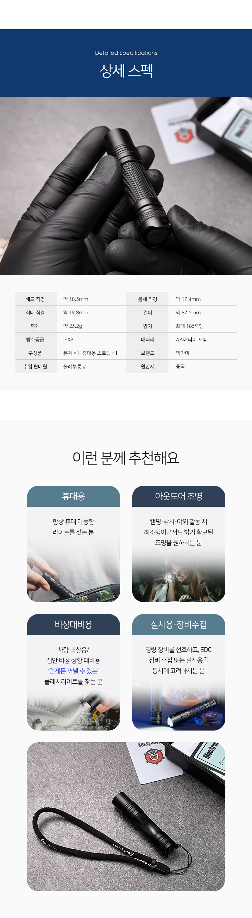 [맥아미] [PS05] 알루 미니 AA 185루멘 플래시라이트