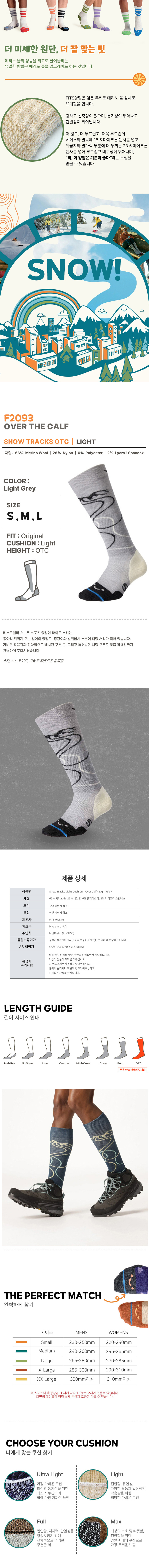 [핏츠삭스(Fits)] 스노우트랙 라이트 쿠션 오버 Light Grey
