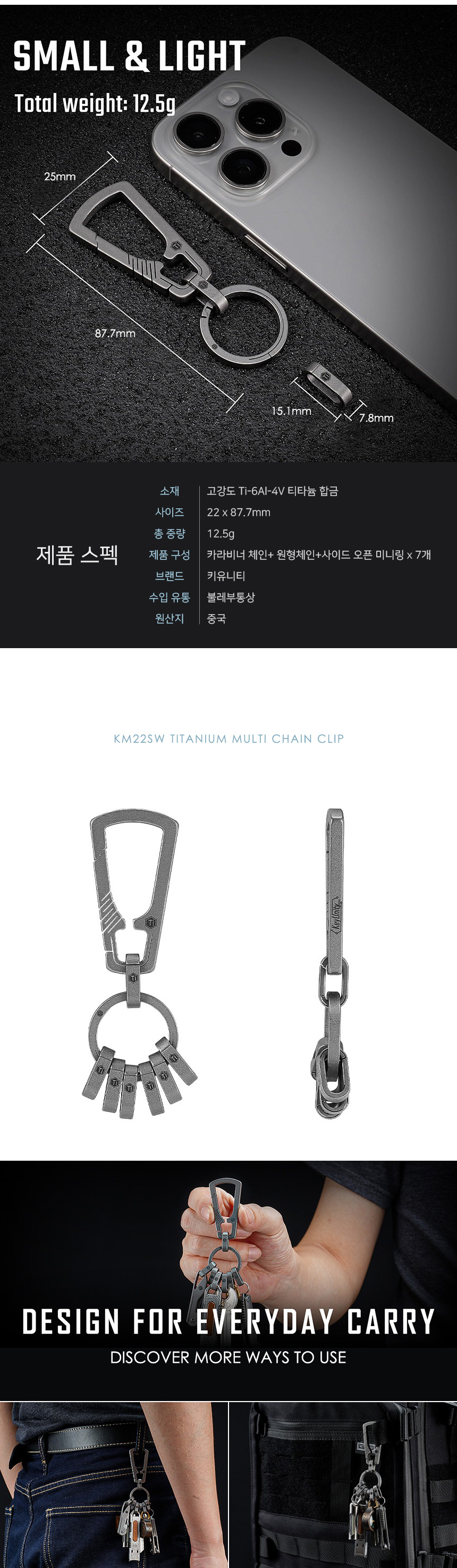 [키유니티] [KM22SW] 티타늄 멀티 체인 클립